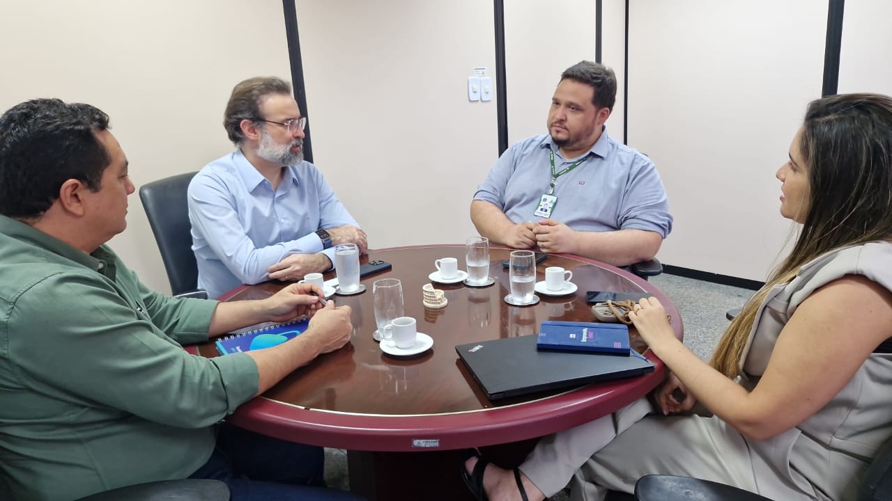 O superintendente-adjunto de Desenvolvimento e Inovação Tecnológica da Suframa, Waldenir Vieira, e o superintendente-adjunto Executivo, Frederico Aguiar, reuniram-se nessa quinta-feira (20), na sede da Autarquia, com o diretor-executivo de Inovação do Centro de Inovação do Hospital Albert Einstein em Manaus, Rodrigo Demarch, e com a gerente de Inovação da unidade, Gabriela Xavier. O objetivo da reunião foi, principalmente, apresentar o balanço de quase um ano de atividades do Centro de Inovação Albert Einstein em Manaus.