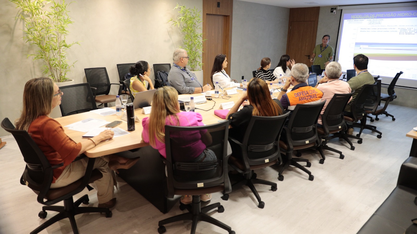 O tenente do Corpo de Bombeiros Charlis Barroso da Rocha, da Defesa Civil do Estado, apresentou dados atualizados de monitoramento meteorológico e hidrológico. Ele ressaltou que o Amazonas conta com um sistema estruturado de alertas e acompanhamento permanente.