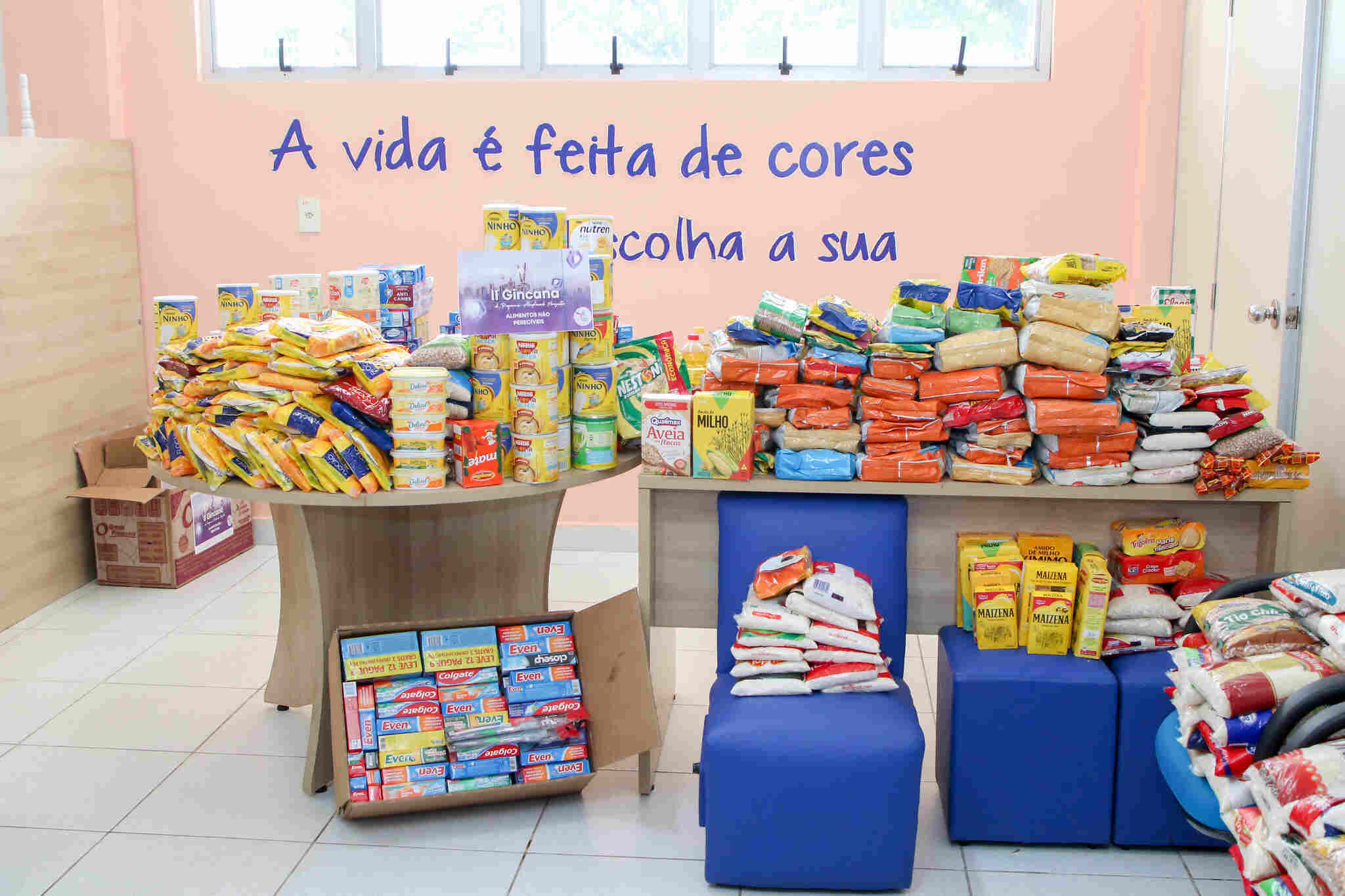 Foram arrecadados feijão, arroz, açúcar, leite em pó e líquido, café, óleo, margarina, macarrão, entre outros alimentos, além de materiais de higiene, como creme dental, escova de dente e sabonete.