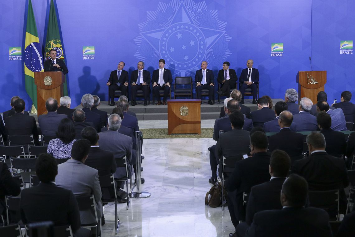 Presidente Jair Bolsonaro participa de cerimônia da assinatura do decreto da Política Nacional de Desenvolvimento Regional e da entrega Oficial dos Planos Regionais da Amazônia, do Nordeste e do Centro-Oeste, no Palácio do Planalto – Valter Campanato/Agência Brasil