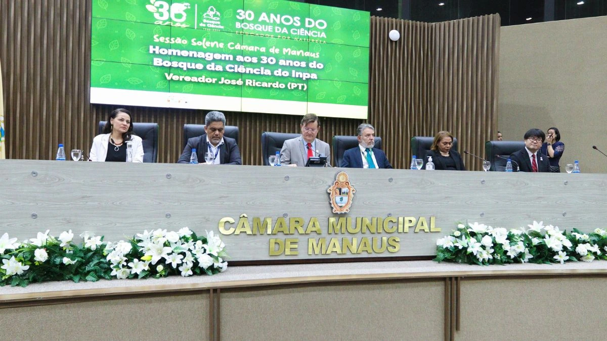 A Prefeitura de Manaus, por meio da Fundação Municipal de Cultura, Turismo e Eventos (Manauscult), participou, nesta quinta-feira, 8/5, da solenidade em homenagem aos 30 anos do Bosque da Ciência, realizada na Câmara Municipal de Manaus (CMM). A cerimônia celebrou as três décadas de história deste importante espaço vinculado ao Instituto Nacional de Pesquisas da Amazônia (Inpa), com reconhecimento aos servidores e pesquisadores que fazem do Bosque um dos maiores patrimônios científicos e ambientais da cidade.