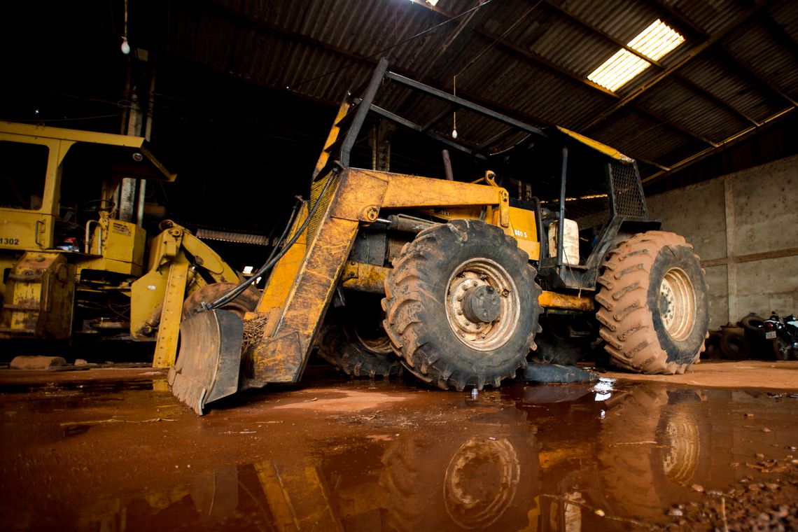 Juína, MT, Brasil: Tratores usados por madeireiros ilegais para extração de madeira da terra indígena Manoki. O maquinário apreendido pelo IBAMA será doado para a prefeitura de Juína. (Foto: Marcelo Camargo/Agência Brasil)