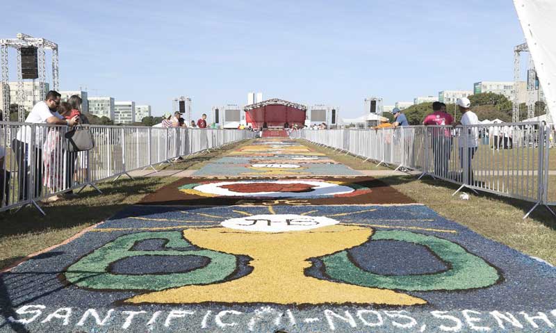Tapete de Corpus Christi é montado na Esplanada dos Ministérios
