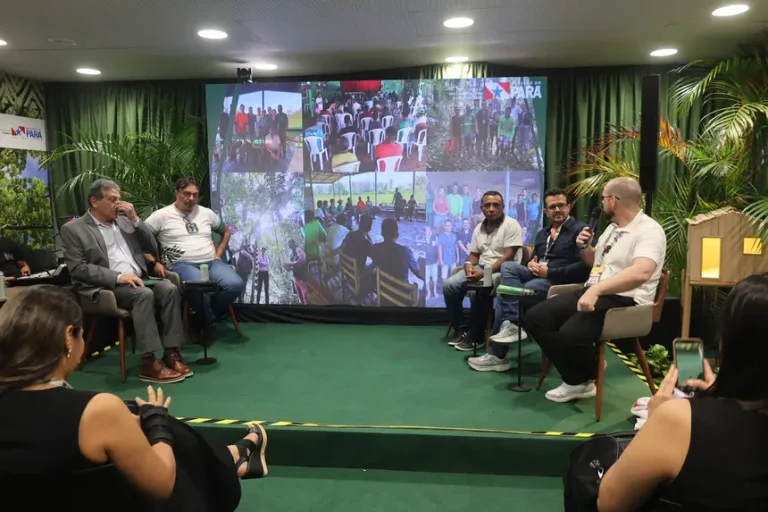 Painel no Pavilhão Pará mostra como tecnologia simples, gestão integrada e participação comunitária estão transformando a limpeza urbana e a proteção dos rios