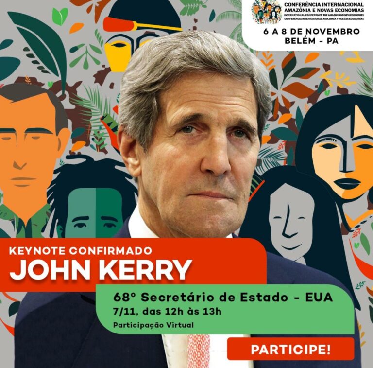Influente na política norte-americana, Kerry considera a floresta essencial para combater as mudanças climáticas. Conferência Internacional Amazônia e Novas Economias pretende prestar contribuições à pauta da COP30, a ser realizada em 2025, no Brasil.