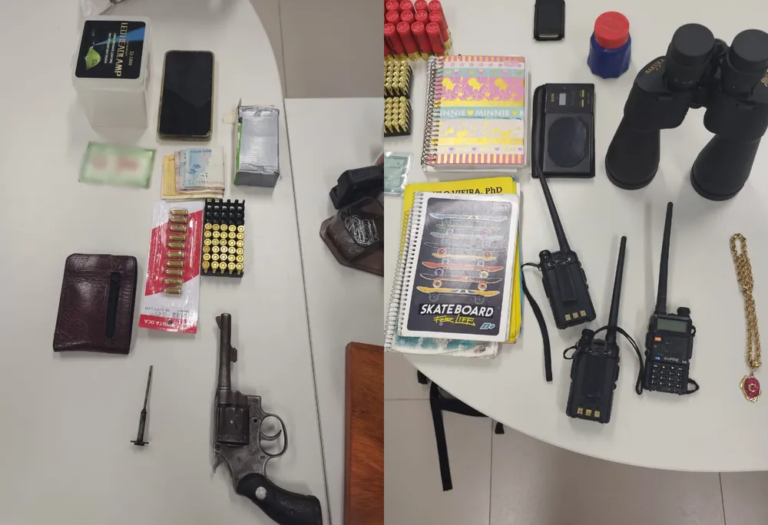 Rádios, armas, coletes e munição foram encontrados pelos policiais durante operação nesta quarta. Acampamento usado por garimpeiros foi destruído